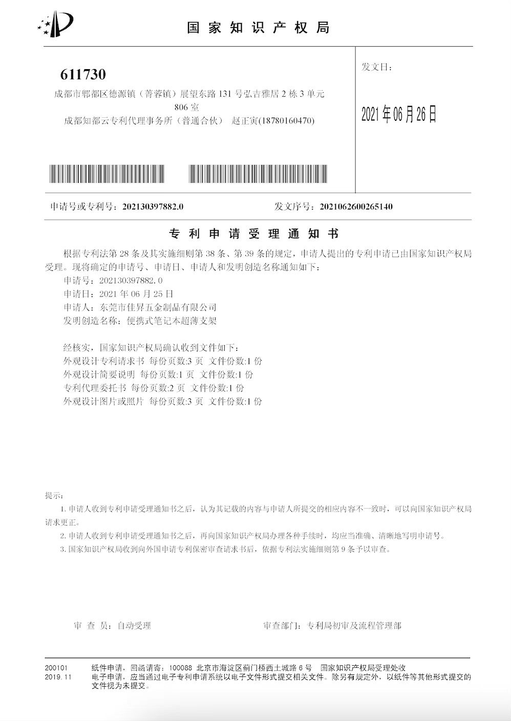 ◆ 專利權(quán): 擁有8項由國家知識產(chǎn)權(quán)局頒發(fā)的外觀設(shè)計專利證書